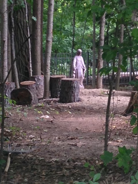 I love this Mary in our woods. I see her from the house and she consoles me. I'm sad. I know that hormones are playing their role, and I'm not quite a week from the miscarriage. But sometimes, I just think of what was supposed to be, and what is now. I know that God has it all in His loving plan.